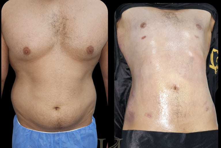 Gynecomastia plastic surgery, or male breast reduction, corrects enlarged, overdeveloped male breasts to create a flatter, more masculine chest contour. The procedure commonly uses liposuction to remove fat and surgical excision for glandular tissue, often under general anesthesia